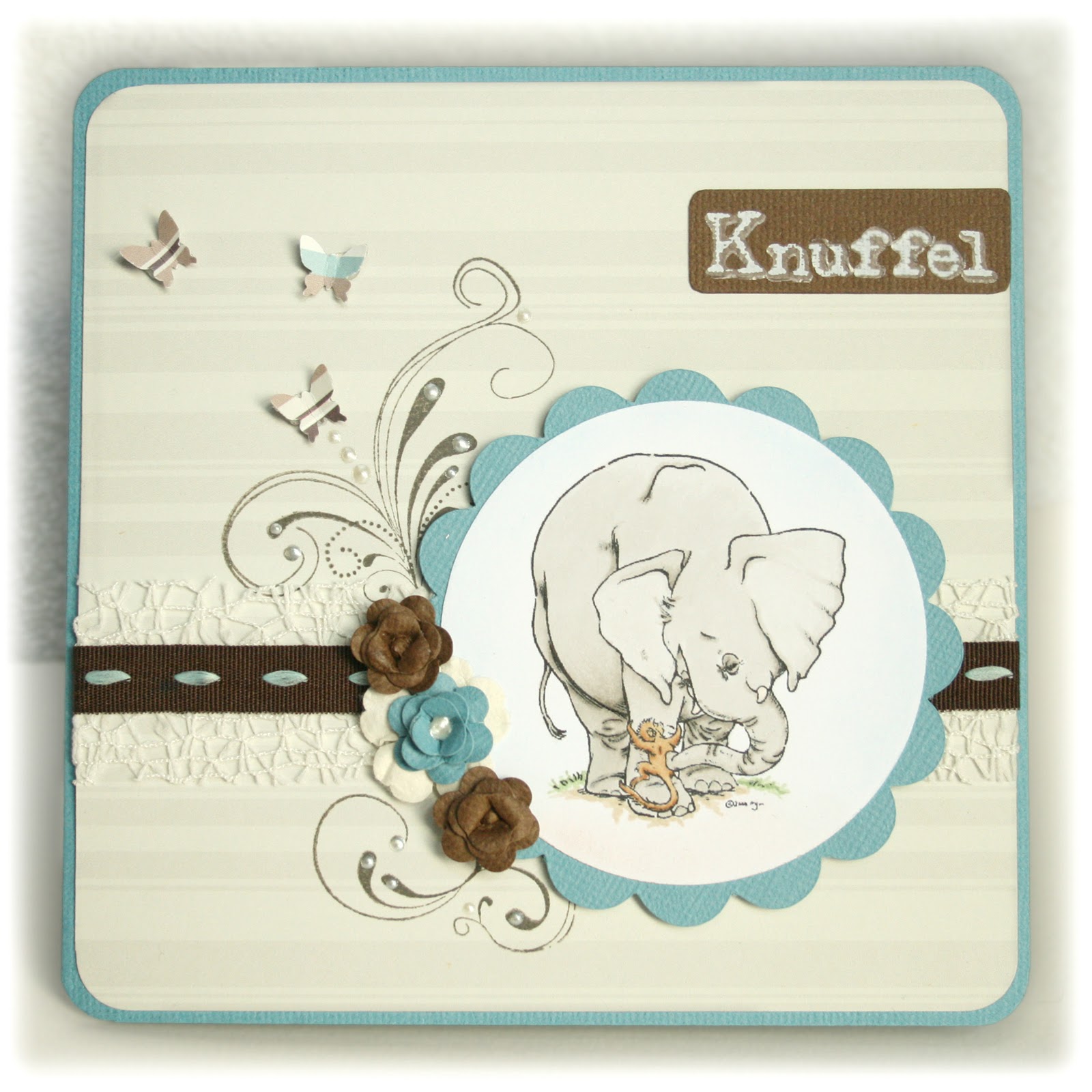 Bij dit kaartje kwam ik terug op een gekend probleem...al die verschillende bloemetjes hier in huis maar net niet de juiste. Daarom ben ik zelf maar even aan de slag gegaan om roosjes te maken die naar kleur perfect aansloten bij het kaartje. Heel makkelijk om te maken en het enige wat je daarvoor nodig hebt is een bloemenpons.