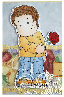 Pfff...ik heb vandaag een kaartje gemaakt voor iemand die heel slecht nieuws te verwerken kreeg de voorbije dagen. Met een hele groep hebben we nu besloten om haar allemaal een kaartje te sturen om haar en haar familie in de mate van het mogelijke een hart onder de riem te steken. Ik dacht meteen aan de stempel van Edwin die een roos vastheeft. Een stempel kiezen is nooit moeilijk :-) alleen, welk papier gaan we er bij gebruiken. Ik wou geen te sombere kleuren maar zo superfel is ook niet echt geschikt...