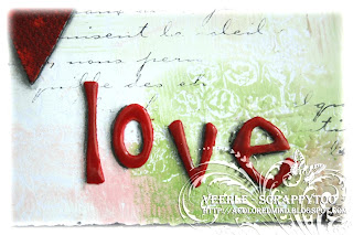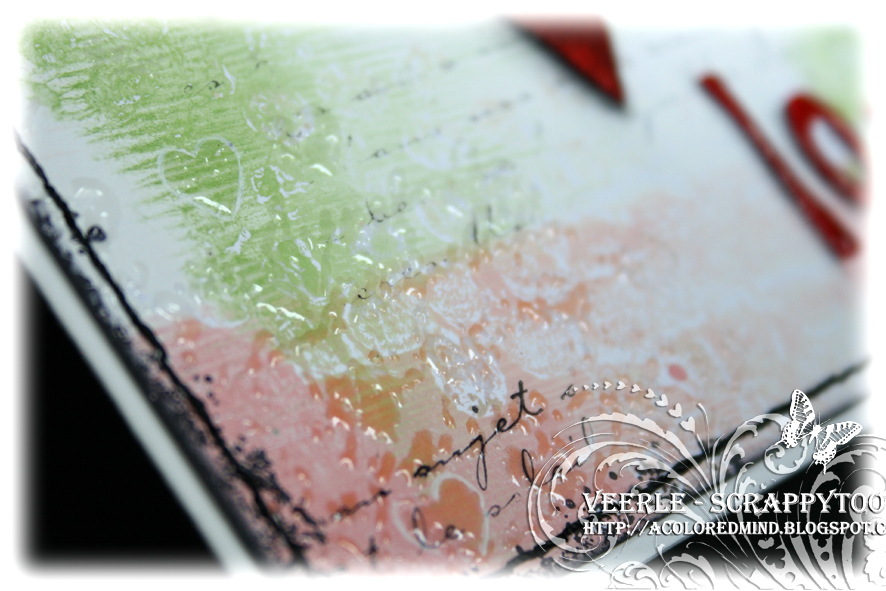 De tekst gemaakt met de computer en "LOVE" is een oude sizzlits-alfabet, en het Wow embossingpoeder boven gehaald.