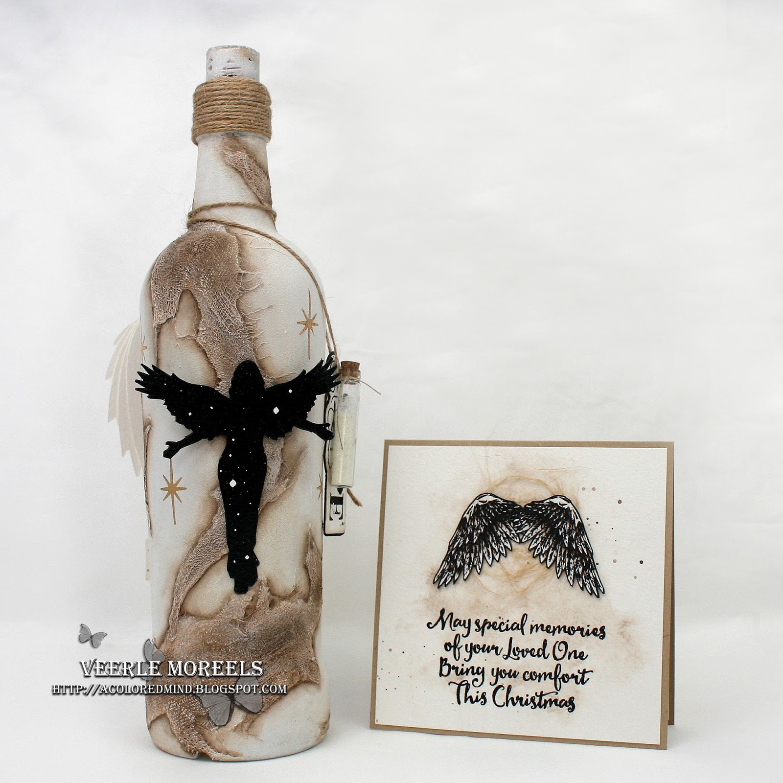 Met die gedachte maakte ik deze bewerkte fles met de prachtige stempels van Visible Image...