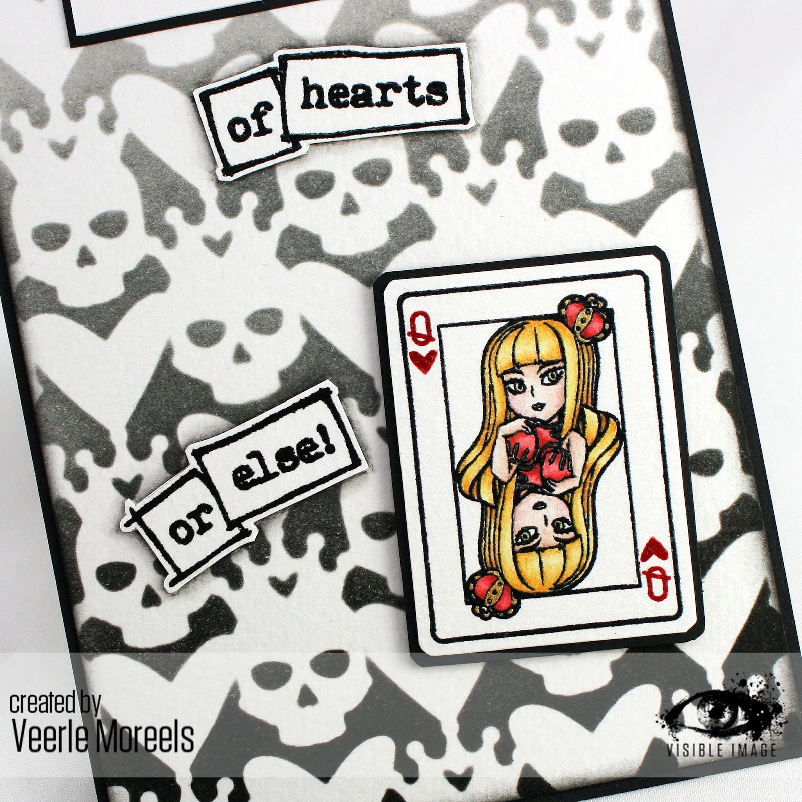 En welke stempels passen daar nu beter bij dan de stempels uit de nieuwe Wonderland reeks 'Queen of hearts'?