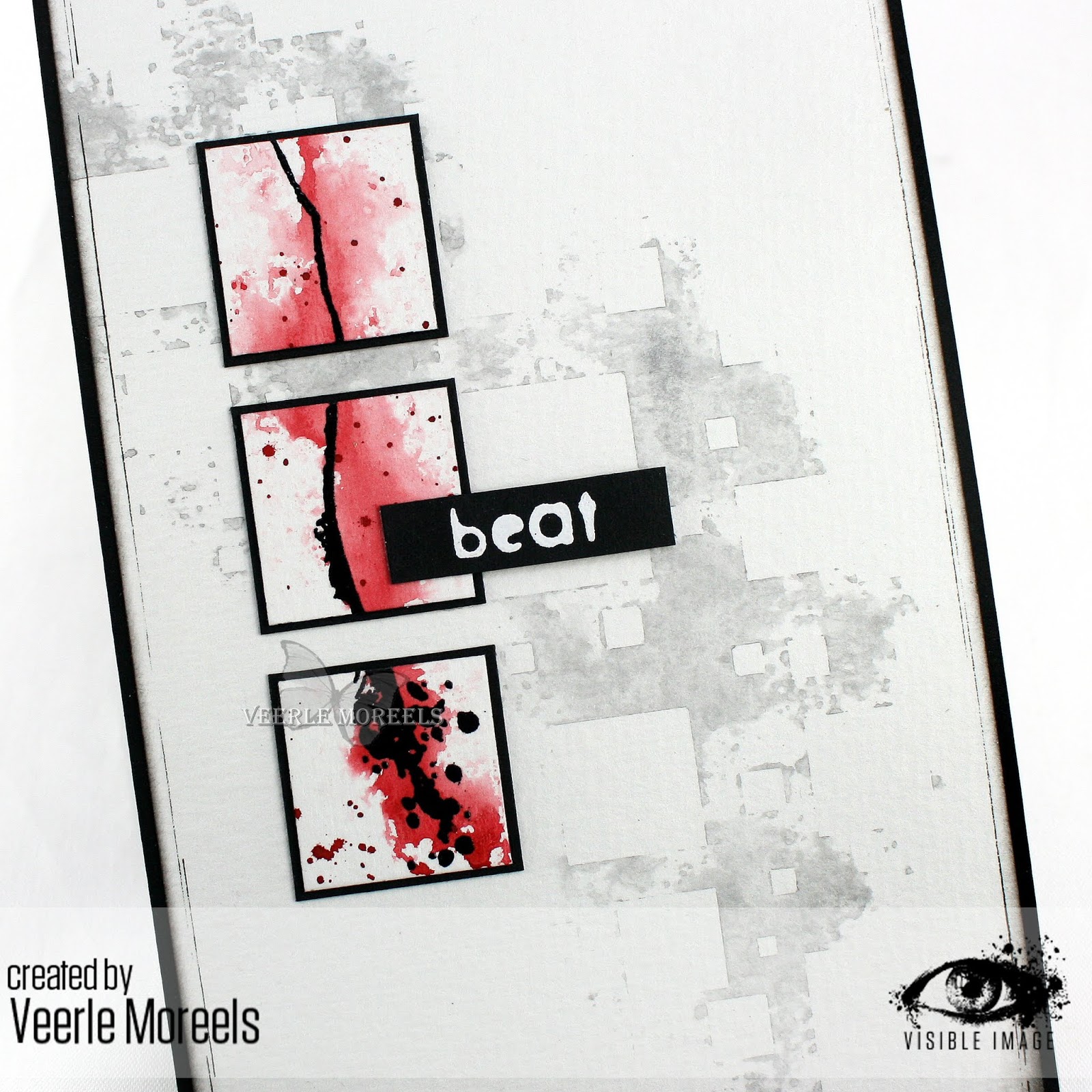 Ik wist dat deze tag naar Visible Image ging opgestuurd worden dus ik wou er graag nog eentje maken, gewoon voor mezelf om hier bij mij te houden in mijn eigen journal. Dus maakte ik een nieuwe achtergrond alleen... deze werd iets donkerder, en ik vond hem super. En voor een of andere reden was het naar mijn gevoel logischer om de drie vierkanten op een andere plaats te zetten en het gewoon abstract te houden.