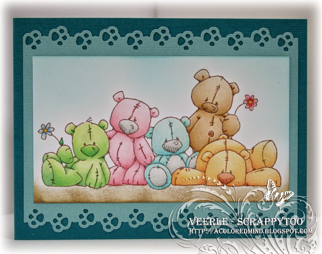 Last weekend everybody of the designteam of In 't Woefke came together to have a relaxing afternoon. And our own Lins was going to teach us how she colors in her stamped images. Step by step she helped us to color in our own stamped image. Now tell me...how did I do it?