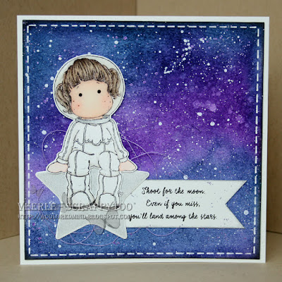 A new them this month for the Kuretake DT and this time it's space.  So I noticed you just never have enough stamps ^.^ The only stamps I have here are stars so...I went over to my friend Lins again to use her stamps. Magnolia really has a lot of different theme' s covered ^.^