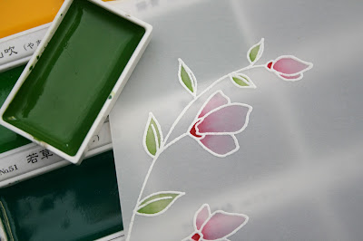 For today's project I made a board out of it that can hold some pieces of paper for me. So I glued on some little clothespins on them after I had put down ( and sanded off ^.^ ) some paints and had my way with a new stampset.