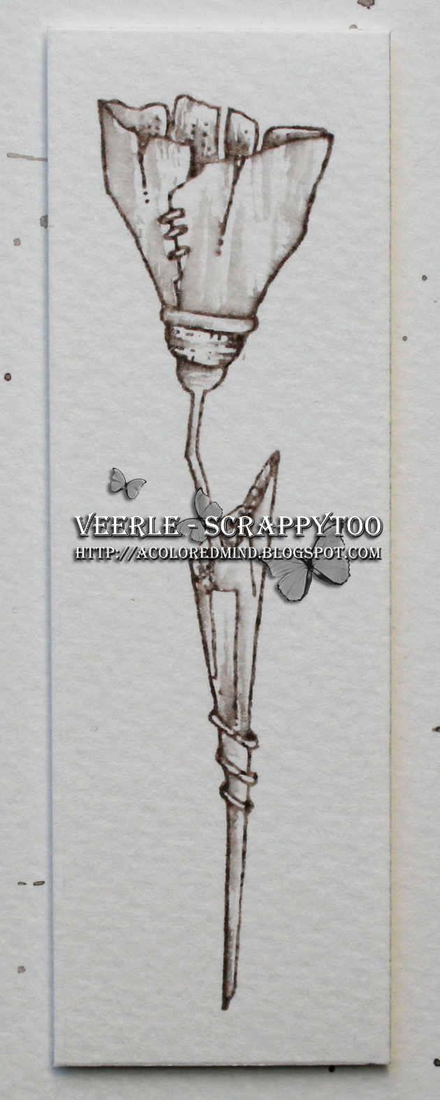 En daar hoorde gewoon een vlinder bij, vind je niet? Ik kleurde hem in met de Gansai Tambi aquarelverf en gebruikte dezelfde kleur samen met wat zwart om de achtergrond te maken.
