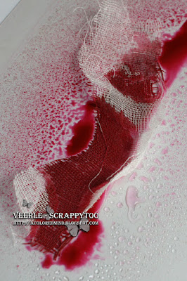 The colors used on this background were Jubilee Cherry and Burnt Umber and the STEP BY STEP on how to make the background can be found HERE. As these were second or even third takes on the same plastic sheet the colors already mixed in each other.