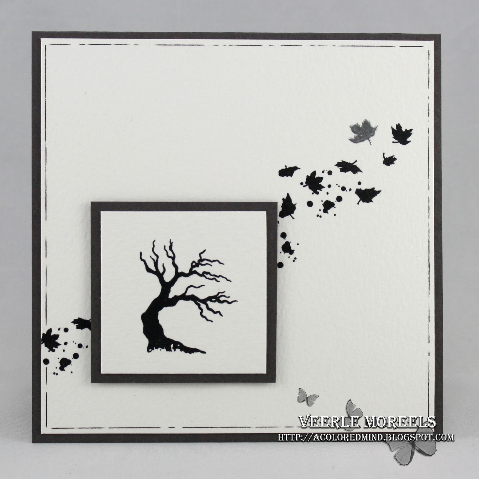 Ik gebruikte grijs-zwart en zilver waardoor dit een rouwkaart kan zijn. Maar je kan dit natuurlijk ook perfect met de herfstkleuren gaan maken...